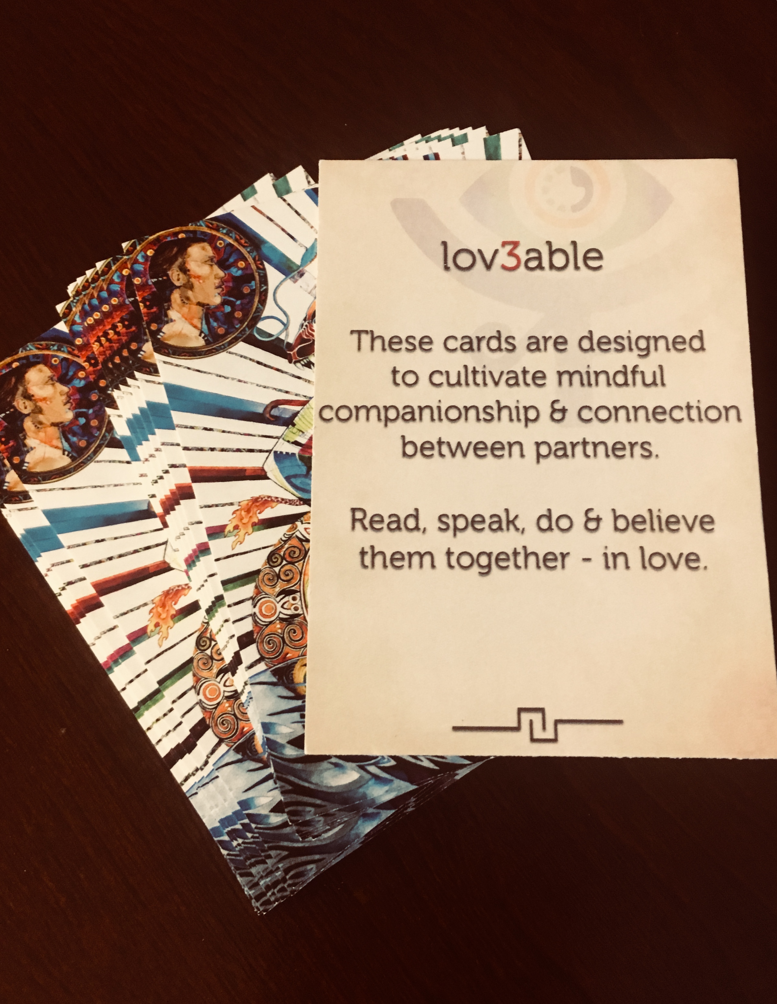 The Lov3able deck is intended to help couples cultivate more love and connection. The deck contains 24 cards including 20 affirmations and 4 togetherness practices.